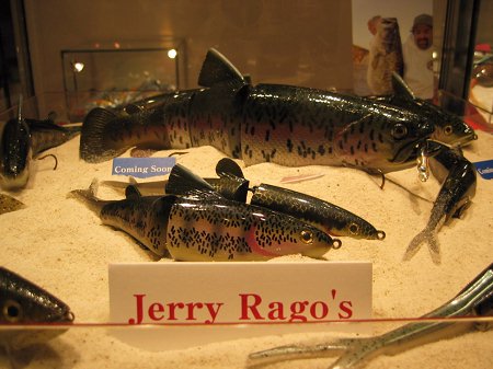 左:帰りに会場をパシャリ。朝一はビッシリ並んでました。 右:こんなでっかいルアーでバスを狙います。