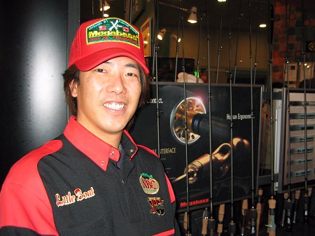 メガバスブースで中田プロ発見! ファンのサインに応じているところ。始めて見ました。