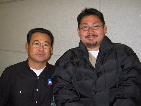 左:高野氏の目がニヤってますねぇ・・・。 右:ダイワの村越正海氏。ルアー釣りの第一人者です。