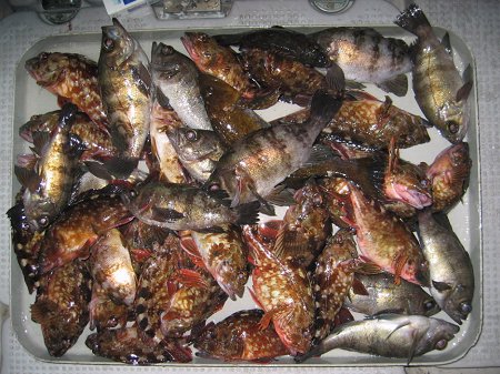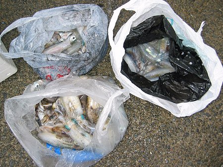 左:一人の釣果がこのくらい。 右:三名の釣果です。