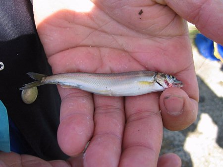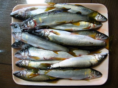 この鮎は二人の釣果なんです。しかも小さい。(><)