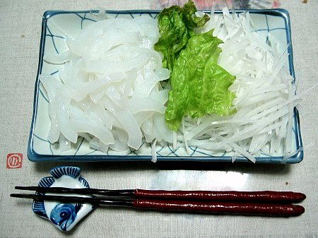 帰宅後、一杯を刺身に。コリコリ感があり、絶品のお味だった。
