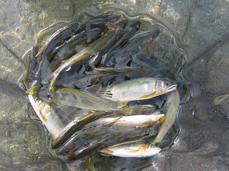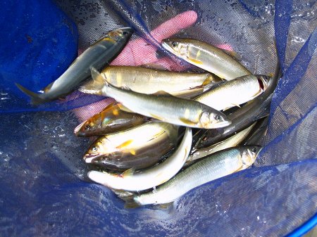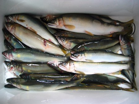 裕太、彩兄妹をモデルに。 背鰭のなが〜い、ヌメヌメで元気な海産鮎ばかり。