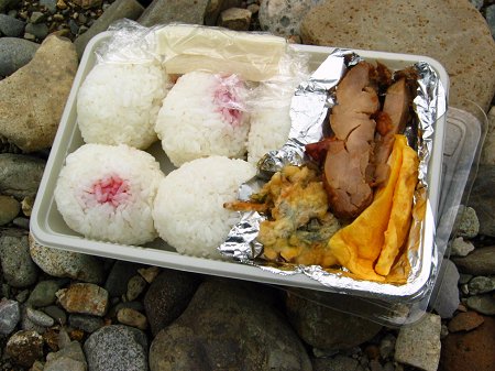 仕方なく納竿し、川原でお手製の弁当をいただきました。
