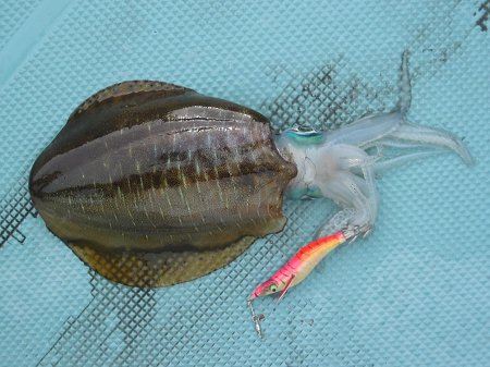 ヘルメット頭のコウイカもヒット。