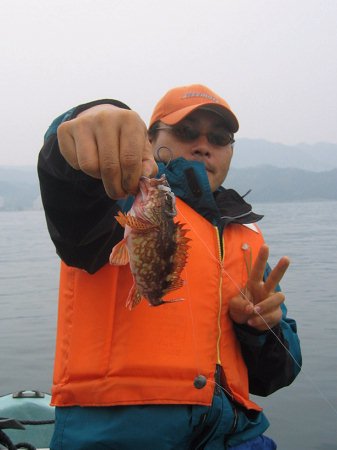 ガシラは計10匹程度。煮付けでグッド!! 田中氏も良型アオリイカを手にニッコリ。
