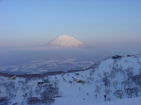 快晴、向こうに見えるのは羊蹄山です。