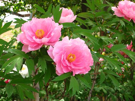 「立てば芍薬(しゃくやく)、座れば牡丹(ぼたん)、歩く姿は百合の花」の牡丹が満開であった。