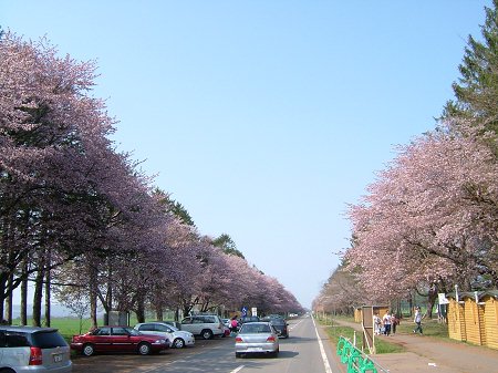 桜並木の規模が全然違うのは一目瞭然。 それでも北海道の土地柄を感じます。