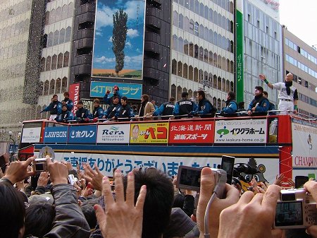 茶色のコートが新庄選手。 右端のボウズは来年の背番号1番“ピッコロ大魔王”